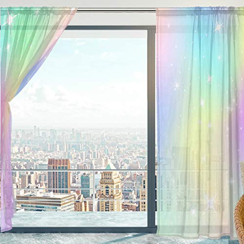 MNSRUU Tenda trasparente Unicorn con arcobaleno Mesh morbida Tulle voile per soggiorno, camera da letto, 140 x 213 cm, set da 2 pezzi