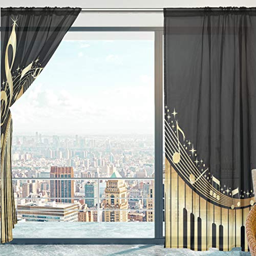 Mnsruu Tende velate voile note musicali con pianoforte morbido velato tulle tende per soggiorno camera da letto finestra 140 x 198 cm 2 pannelli