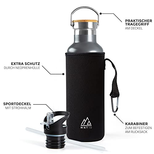 MNT10 Bottiglia d'acqua in 750 ml I Bottiglia d'acqua da esterno da 0,75 l con funzione isolante per sport, escursioni, lavoro I Bottiglia d'acqua in acciaio inossidabile a doppia parete da 750 ml