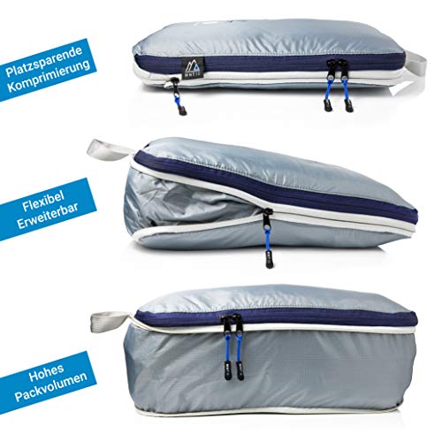 MNT10 Sacchetti da viaggio con compressione I Cubi da imballaggio con anello come organizzatore per valigie I leggeri sacchetti compressori per lo zaino | Cubi di imballaggio (1x XL)