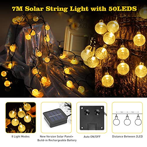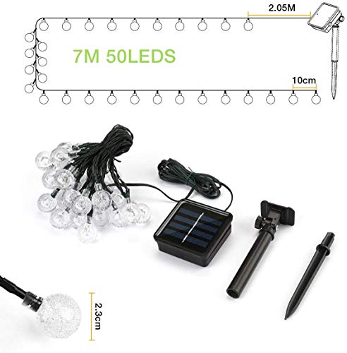 MNTCQB Catena Luminosa Esterno Solare, 7M Luci Solari Esterno Giardino, 50 LED Catena Luminosa Stringa Crystal Globe, Lucine Decorative Interno per Giardino Patio Cortile Matrimonio Festa Natale