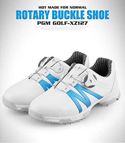 MNVOA PGM Scarpe da Golf Bambini Twist Quick Comfort Waterproof Spikeless Sneakers Leggere per L'Estate,White And Blue,30EU