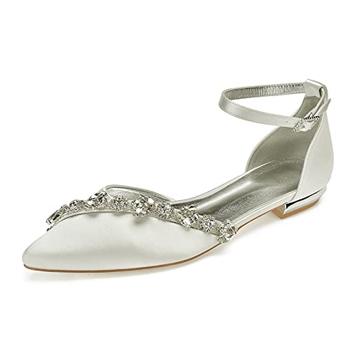 MNVOA Scarpe da Sposa Scarpe da Sposa Piatte in Raso con Strass E Punta Chiusa da Donna Taglia 36-43,Avorio,37EU