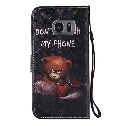 Mo-beauty ® Samsung Galaxy S7 custodia in pelle + tempered glass Screen Protector (free) con strap da polso, corpo intero modello colorato design in pelle PU portafoglio slot Flip Case per Galaxy S7 Edge, Ecopelle, Don't touch my phone #1, Samsung Galaxy S7 Edge