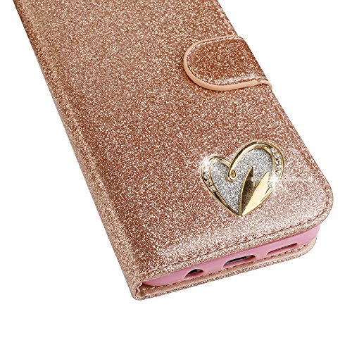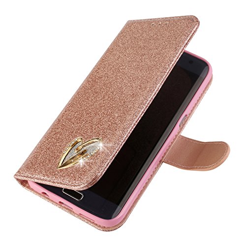 Mo-Somnus Custodia Compatibile Samsung Galaxy S7 Edge [con Pellicola in Vetro Temperato], Portafoglio Glitter Bling Libro Pelle PU Flip Caso Magnetica Supporto Cover (Oro Rosa)