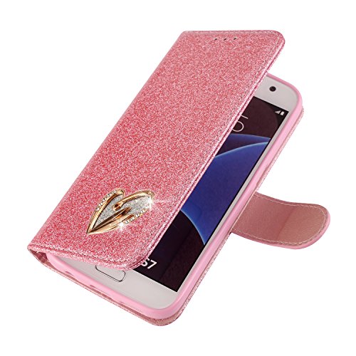 Mo-Somnus Custodia Compatibile Samsung Galaxy S7 [con Pellicola in Vetro Temperato], Portafoglio Glitter Bling Libro Pelle PU Flip Caso Magnetica Supporto Cover (Rosa)