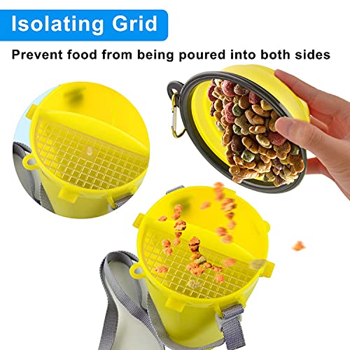 MOACC Bottiglia d'Acqua e Cibo per Cane, Bottiglia Viaggio Portatile con 2 Pieghevole Ciotola per Passeggiare, Viaggio, Turismo A Piedi, Campeggio (Giallo)