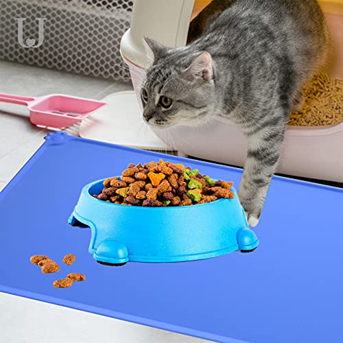 MOACC Tappetini Sottociotola per Cani, Tappetino per Ciotola di Cibo Antiscivolo per Animali con Disegni di Zampe Perfetto per Proteggere Il Pavimento da Liquidi(Blu, 54 x 38 cm)