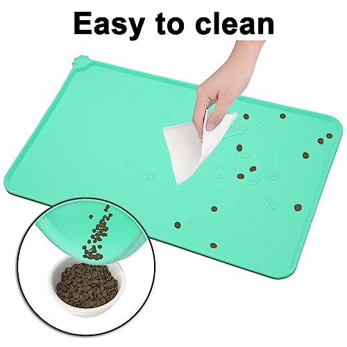MOACC Tappetini Sottociotola per Cani, Tappetino per Ciotola di Cibo Antiscivolo per Animali con Disegni di Zampe Perfetto per Proteggere Il Pavimento da Liquidi(Verde, 47 x 30 cm)