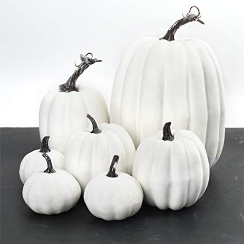 Moanyt - Zucche artificiali, 7 zucche artificiali in schiuma, per raccogliere la caduta e la decorazione del Ringraziamento, mini zucca gialla artificiale per Halloween