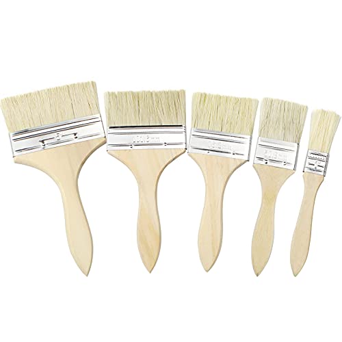 Mobci 5 Pezzi Pennelli Piatti da Vernice Manici in Legno, Pennello in Setola Naturale, Pennello Con Manico In Legno per Muro, Recinzione e Pittura Per Legno, Vernice, Macchia e Colla