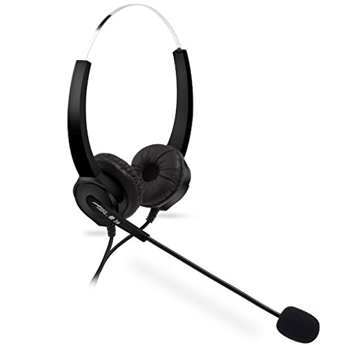 Mobeka Telefono con Auricolari per Call Center Auricolari Cuffia da Tavolo Retrattile con Microfono Operatore di Call Center soppresso (Colore: Nero)