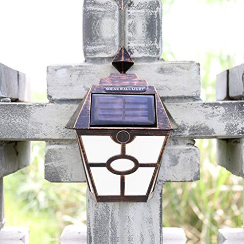Mobestech lampada da parete solare retro lampada da parete esagonale luce per recinzione solare per giardino paesaggistico (2 pezzi luce bianca)