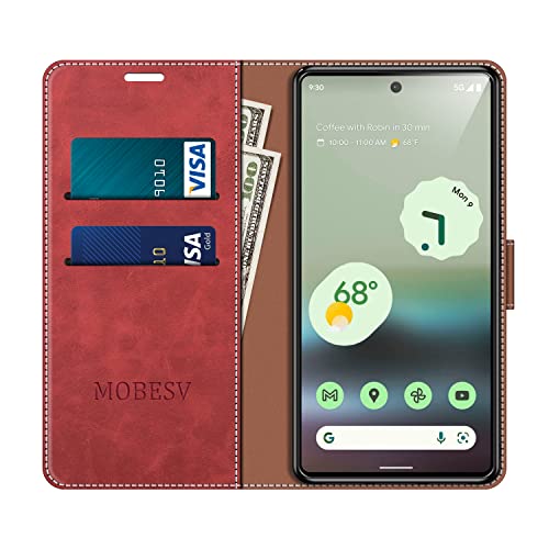 MOBESV Custodia Google Pixel 6A 5G, Cover a Libro Google Pixel 6A 5G, Custodia in Pelle Google Pixel 6A 5G Magnetica Cover per Google Pixel 6A 5G, Elegante Rosso