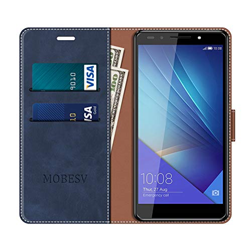 MOBESV Custodia Honor 7, Cover a Libro Honor 7, Custodia in Pelle Honor 7 Magnetica Cover per Honor 7, Elegante Blu