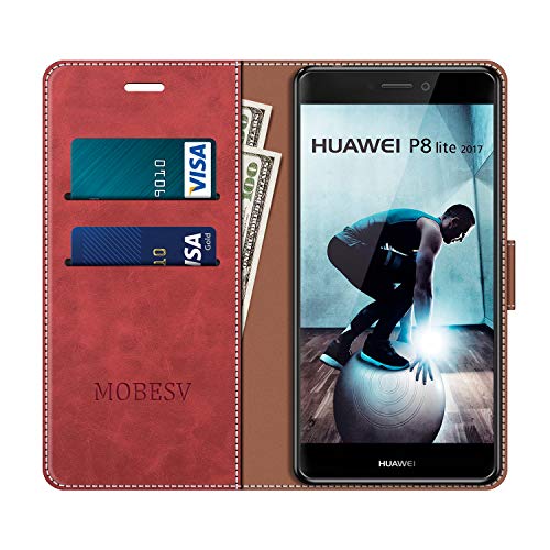 MOBESV Custodia Huawei P8 Lite 2017, Cover a Libro Huawei P8 Lite 2017, Custodia in Pelle Huawei P8 Lite 2017 Magnetica Cover per Huawei P8 Lite 2017, Elegante Rosso