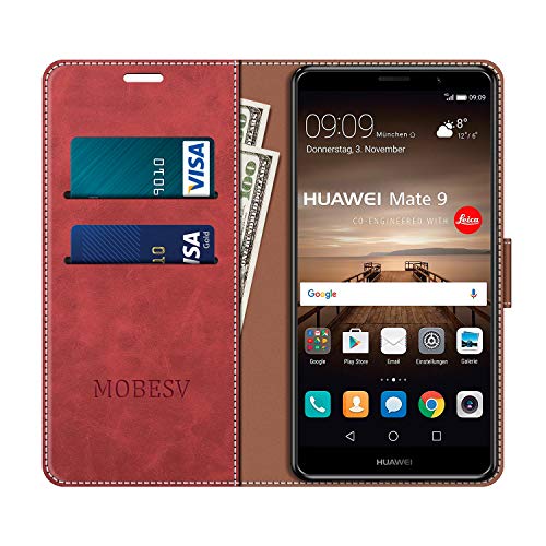 MOBESV Custodia Huawei Mate 9, Cover a Libro Huawei Mate 9, Custodia in Pelle Huawei Mate 9 Magnetica Cover per Huawei Mate 9, Elegante Rosso