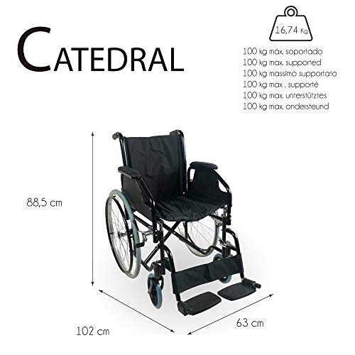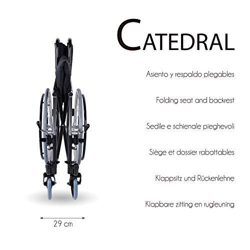 Mobiclinic, Sedia a rotelle pieghevole, Catedral, Marchio Euroepo, Ortopedica, Marcatura CE, Per disabili, Manuale, Freno sulle maniglie, Poggiapiedi e braccioli rimovibili, colore Nero, Leggerissima