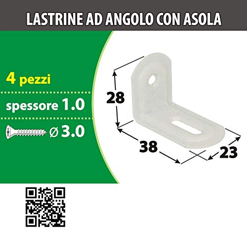 Mobila RS00664 Lastrine ad Angolo con asola, in Acciaio, Colore Bianco, 23x28x38 mm, 4 Pezzi, 4 unità