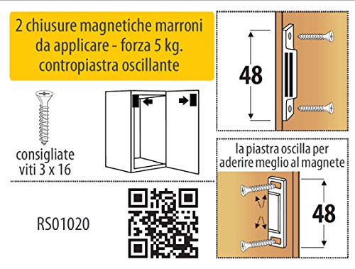 Mobila RS01008 - Chiusure magnetiche marroni da applicare, con piastra oscillante, forza 4 kg, 2 pezzi