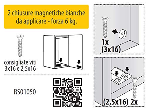Mobila RS01024 - Chiusure magnetiche bianche, da applicare, forza 8 kg., 2 pezzi