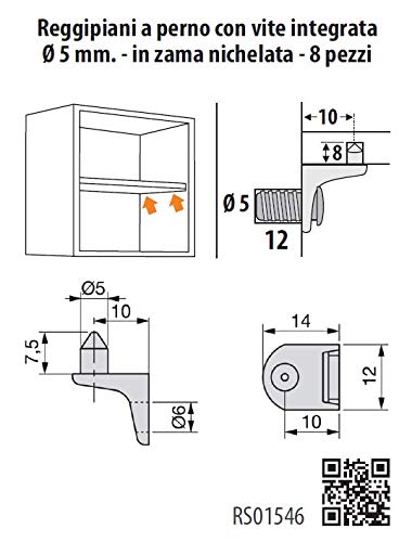 Mobila RS01546 Reggipiani in zama nichelata, con Vite premontata, 8 Pezzi, Grigio, 8 unità