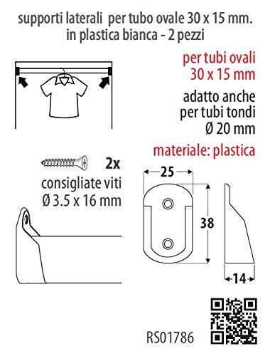 Mobila RS01786 - Supporti laterali, per tubo ovale, plastica bianca, 2 pz.
