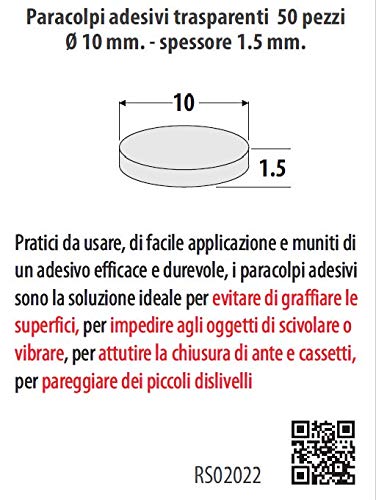 Mobila RS02022 - Paracolpi adesivi trasparenti, Ø 10, spessore 1,5 mm, 50 pezzi