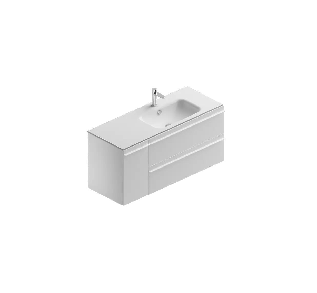 Base lavabo in finitura bianco opaco l120 p46, con 2 cassetti e 1 anta sx a chiusura soft close e maniglie in alluminio laccato bianco opaco, completa di lavabo vasca dx in mineral bianco opaco. Indicato per chi cerca praticità e facilità di pulizia del piano lavabo.. Ideale per chi cerca un mobile dall'estetica fresca e contemporana, che si adatti anche a spazi ridotti senza rinunciare alla funzionalità.. "FACILE DA PULIRE;
