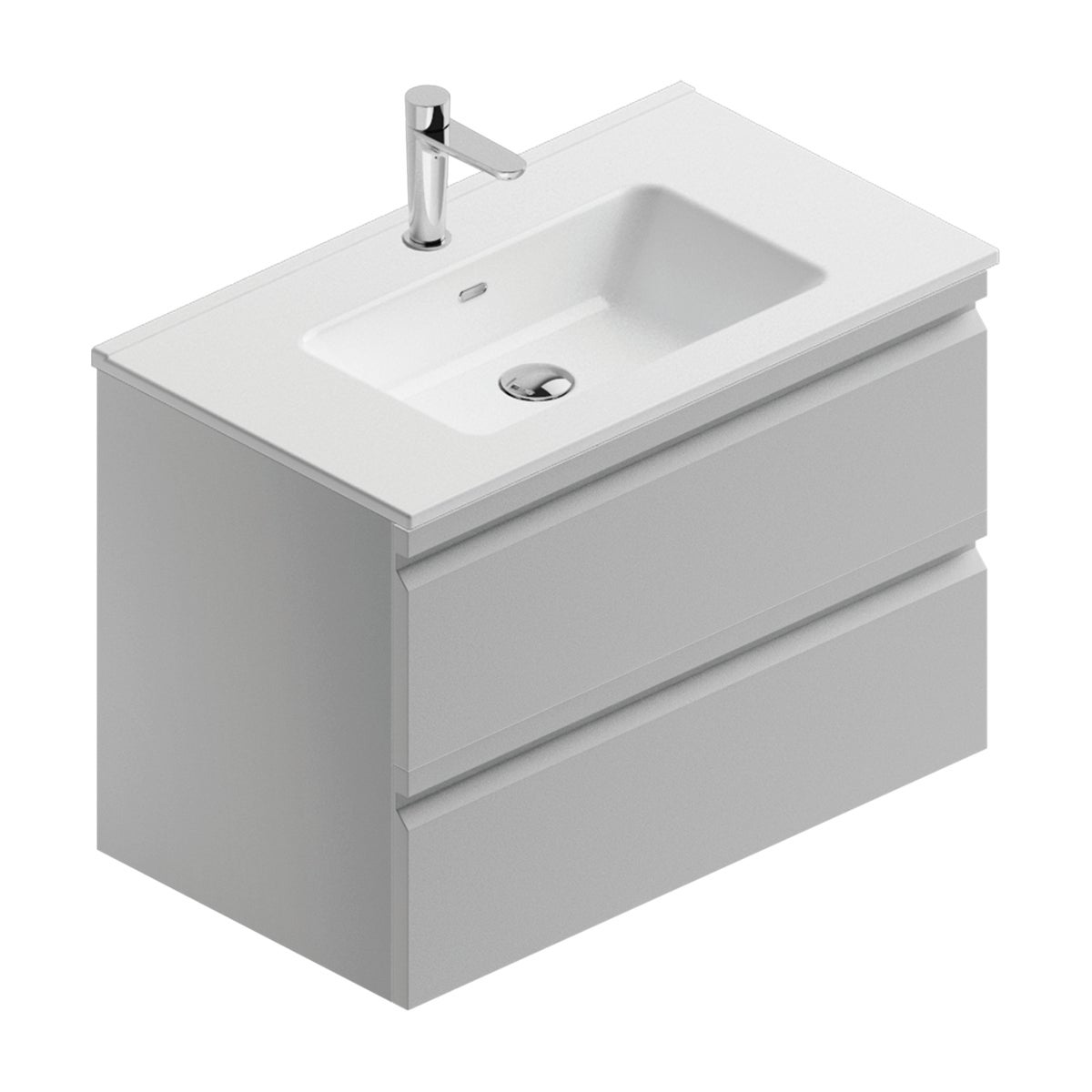 Base lavabo in finitura artico opaco, con 2 cassetti, apertura a gola e chiusura soft close, completa di lavabo in ceramica bianco lucido. Ideale per chi cerca un mobile dall'estetica fresca e contemporana, che si adatti anche a spazi ridotti senza rinunciare alla funzionalità.. Indicato per chi cerca praticità e facilità di pulizia del piano lavabo.. nuovi frontali dal design ricercato, impreziositi da un'apertura estremamente pratica e funzionale. Un grande vantaggio nella pulizia dato dalla sagoma dei frontali, a forma rovesciata, che non permette il depositarsi di sporco nel canale. La profondità di 46 centimetri si adatta anche a spazi ridotti, mantenendo comunque un ottimo bacino del lavabo e un generoso spazio contenitivo del mobile