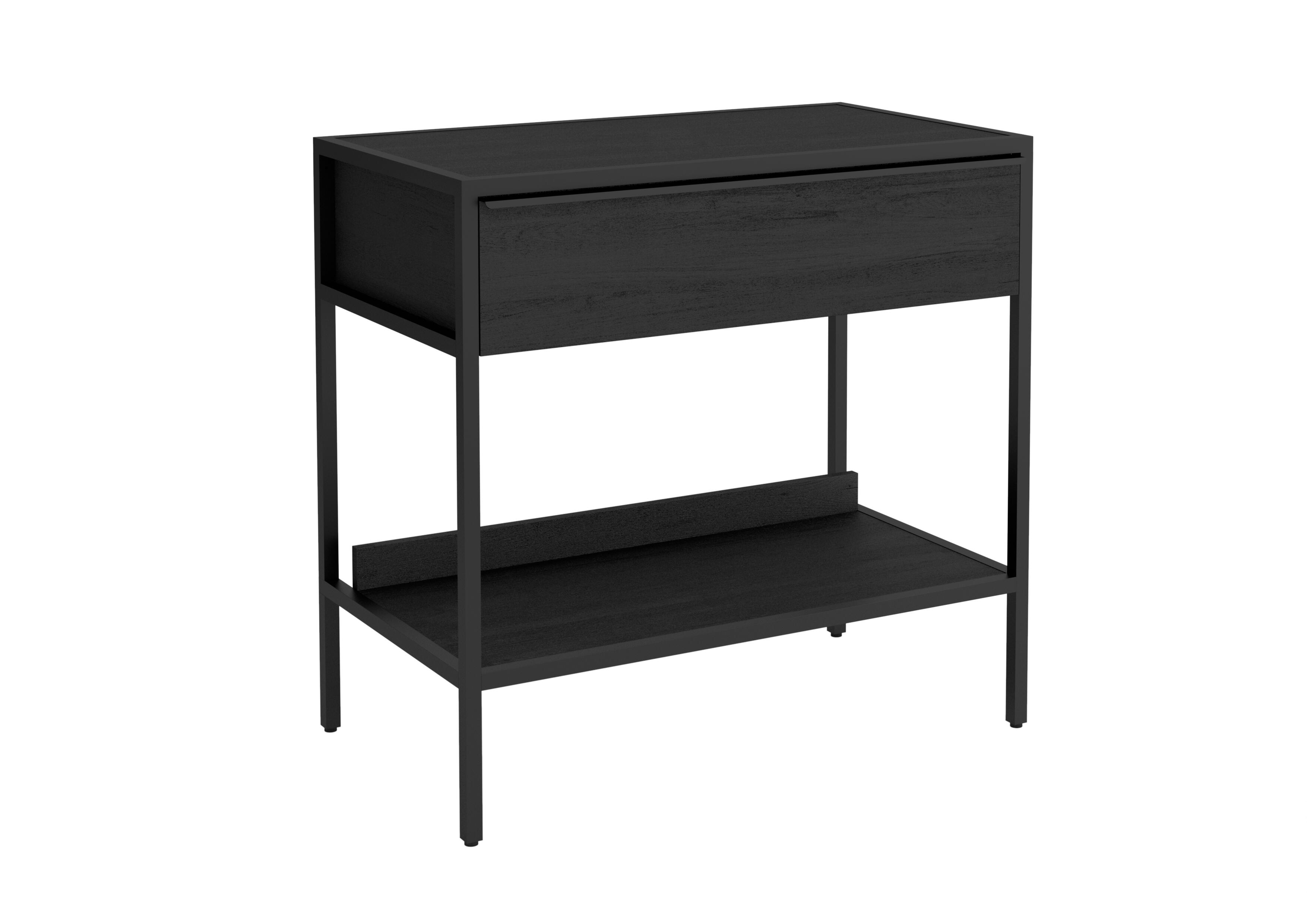 Mobile di spessore di 16mm in truciolare e HDF pensato per un lavabo di appogio, con finitura in nero. Possede un cassetto e un ripiano inferiore per organizzare i tuoi articoli da bagno. Il sistema di chiusura controlata del cassetto eviterà lo sbattimento delle ante che protebbero danneggiare la struttura. Adatto per essere appogiato a terra grazie alla sua struttura con 4 piedini. Si puó combinare con un lavabo da appogio e creare un stile moderno del tuo bagno. Unisci questi mobili in stile industriale con altri della serie Studio disponibile da . Misure: 80x77,2x45cm (largezzaxaltezzaxprofondità). Lavabo non incluso.