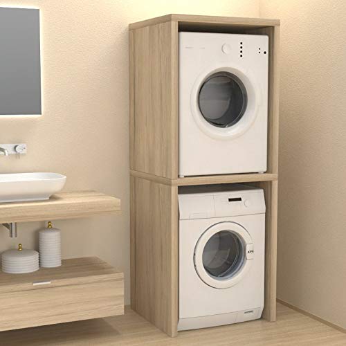 Ve.Ca. Mobile colonna Coprilavatrice, in legno, copri lavatrice/asciugatrice, diversi colori, anche su misura, lavanderia arredo bagno (Quercia sherwood)