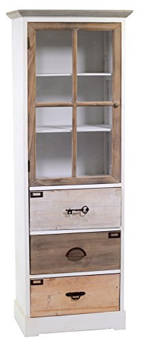 Mobile colonnina con vetrinetta Malmo in legno shabby chic invecchiato colorato 3 cassetti + anta 56x33h160 cm porta oggetti per casa camera salotto cucina corridoio bagno