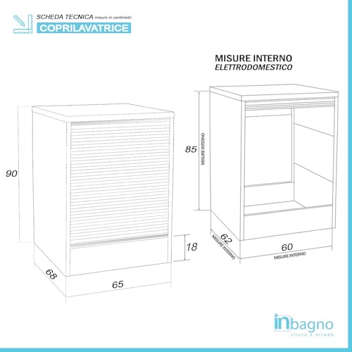 DIMENSIONI INTERNE UTILI:60 x 62 x 85h cm