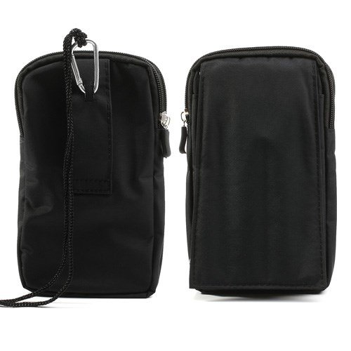 DFV mobile - Custodia Nylon Multiuso con Diversi Scomparti e Passante Cintura Chiusura per Cerniera e Moschettone Compatibile con Hisense King Kong G610 - Nero XXL (19 cm X 10,5 cm)