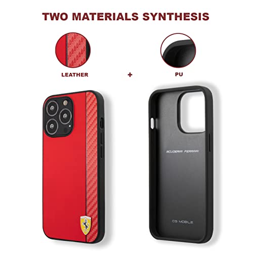 CG MOBILE Ferrari - Custodia protettiva per iPhone 13 Pro Max, effetto rosso e carbonio, in pelle PU, resistente e antigraffio, con facile scatto, assorbimento degli urti e logo firma