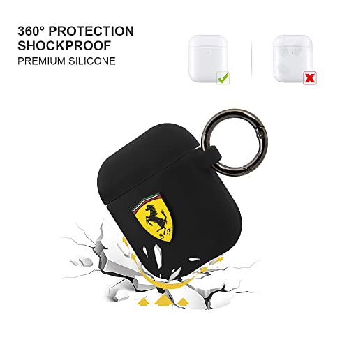 CG MOBILE Ferrari - Custodia in silicone per Airpods 1/2, design portachiavi con logo Ferrari, nero