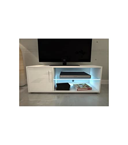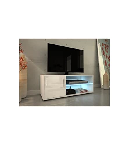 Mobile TV Kora, 100 cm, con illuminazione a LED, colore: Bianco laccato