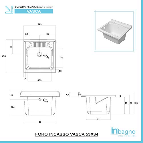 INCLUSO l'asse strofinatoio in legno di bamboo (utilizzabile anche come solido appoggio per i propri oggetti) e kit sifone e piletta - NON è presente la rubinetteria e il corrispettivo foro, in quanto la vasca può ospitare un miscelatore sia su vasca (a destra o sinistra) che un miscelatore a muro