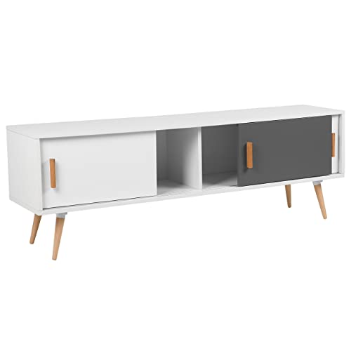 Mobile TV Moderno in Legno con Ante e Cassetti Bianco e Grigio Indiana