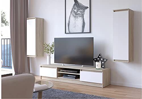 Mobile TV perfetto per soggiorno, camera da letto o camera dei ragazzi, 2 ante e 2 ripiani perfetto per arredare gli interni. Dimensioni: 160 x 33 x 40 cm (Quercia Sonoma/Bianco)