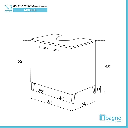 Dimensioni: L 70 x P 45 x H 60 cm, funzionali e versatili, sono ideali anche per gli spazi più contenuti - L'ampio vuoto sanitario (L 22 x P 30 cm) garantisce la massima compatibilità con i diversi lavabi a colonna presenti in commercio