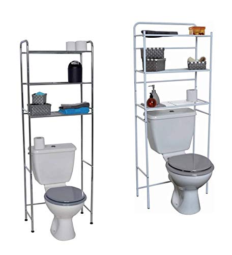 Mobile da toilette WC in metallo bianco con 3 ripiani .