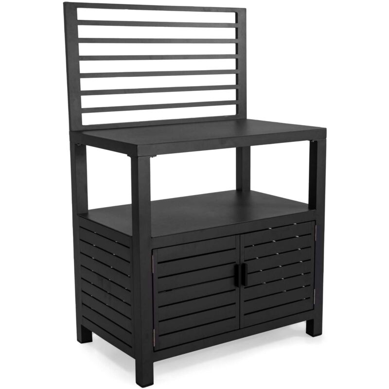 Struttura In Alluminio Verniciato A Polvere. Altezza Del Piano 90Cm Misura Tubi Alluminio: 50X50X1,0Mm Piano In Alluminio 3,0Mm Con Due Ante In Doghe Di Alluminio Articolo Smontato Materiale: Alluminio Colore: Antracite Base: 90 cm Altezza: 141 cm Profondità: 56 cm Peso: 27 kg