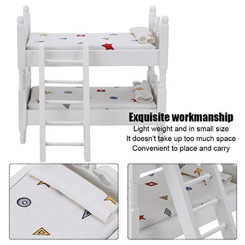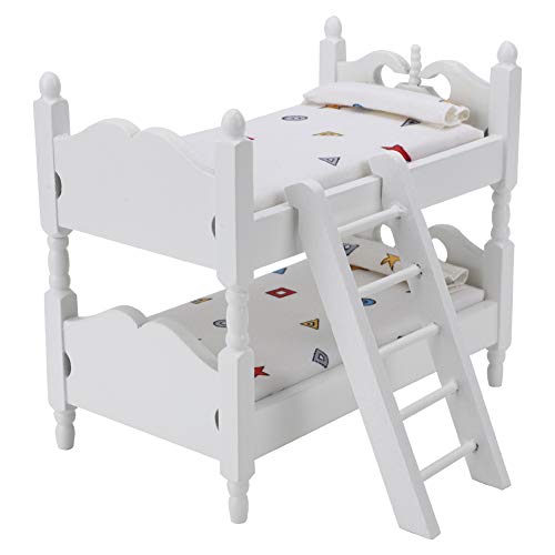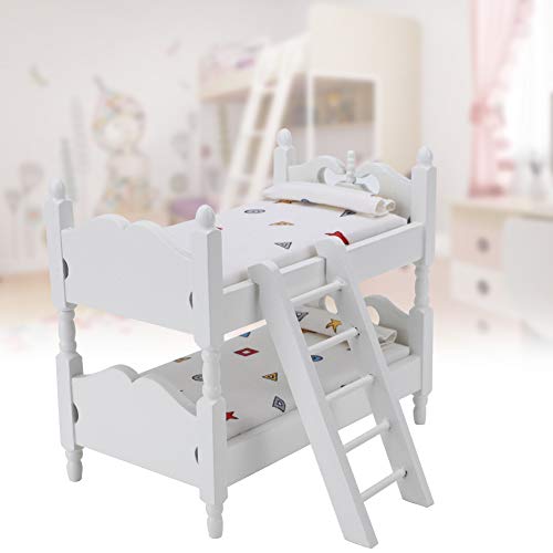 Mobili per casa delle bambole in scala 1/12 Mini letto a castello in miniatura,kit da letto per casa delle bambole in legno fai-da-te con cuscini/scala,accessori e giocattoli per la casa delle (1#)
