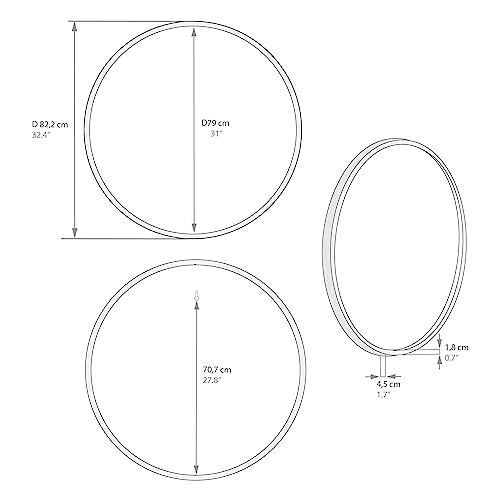 DESIGN: Specchiera da parete con diametro di 82,2 cm, con cornice spessa 4,5 cm. Vetro di alta qualità con ottimo indice di riflessione.