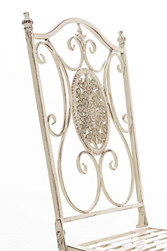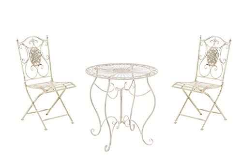 CLP Set Mobili Giardino Aldeano I Salotto Esterno in Ferro Laccato Design Nostalgico I Set Esterno con Tavolino Rotondo Ø 70 CM + 2X Sedie, Colore:Antico-Crema