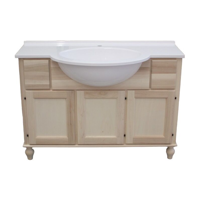 MOBILI 2G - Mobile bagno 3 porte 2 cassetti con lavello legno grezzo 111x36x80 Quantità: 1 mobile bagno con lavello in mineralmarmo Mobile bagno 3 porte 2 cassetti con lavello legno grezzo 111x36x80 Mobile bagno a 3 porte e 2 cassetti. Guide dei cassetti in legno. Misure: Larghezza Cm. 111 Profondità Cm. 36 Altezza Cm. 80 Materiali: Struttura, gambe, telaio delle porte e facciate dei cassetti: legno massello. Fianchi e fondo: pannello in fibra di legno impiallacciato. Schienale, fondi dei cassetti e pannelli delle porte: compensato. Piano in mineral marmo con vasca per mobile bagno. Con foro centrale per miscelatore. Misure: Larghezza Cm. 115 Profondità Cm. 59 Altezza Cm. 7 Materiali: fusione di resina e polvere di marmo. Finitura: colore bianco. Il Mineralmarmo è un materiale pratico e durevole, alla vista è completamente bianco. Il mobile arriva montato Finitura: grezzo non verniciato Il mobile è pronto per essere verniciato Il mobile non è finito Mobili grezzi artigianali, pronti