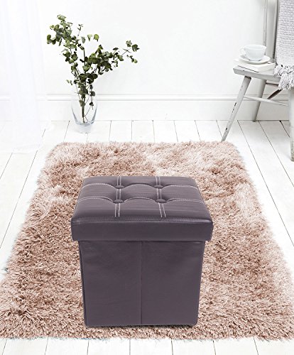 Mobili Rebecca Pouff Cubo Portaoggetti Ottomano Puff Sgabello Salvaspazio Rivestito finta pelle Nero con Coperchio 38 x 38 x 38 cm (cod. RE4915)