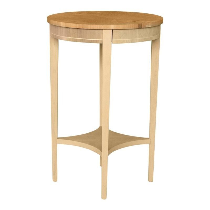 MOBILI 2G - Tavolino rotondo 1 cassetto Legno grezzo 48x48x72 Tavolino costruito in legno massello rendendo il mobile solido e allo stesso tempo elegante. Piano rotondo con 1 cassetto e con un ripiano sottostante situato tra le gambe. Ideale per il soggiorno o in cucina o per contract: ristoranti, agriturismi, bar, trattoria, pizzeria e esercizi pubblici. Misura: Larghezza 48 cm - Profondità 48 cm - Altezza Totale 72 cm Stile: arte povera Quantità: 1 Tipologia: Fisso Gambe: sagomate Piano: rotondo Materiale: Gambe e struttura: legno massello di faggio Piano rotondo impiallacciato noce Finitura tavolino: grezzo non verniciato Il mobile è pronto per essere verniciato Il mobile non è finito Mobili grezzi artigianali, pronti per essere verniciati, laccati o decorati I mobili grezzi non sono forniti di chiavi, maniglie o vetri( l'articolo è già fornito di serratura) Il mobile è pronto per essere verniciato, sottoposto ad un procedimento di levigatura il mobile è adatto a qualsiasi tipo